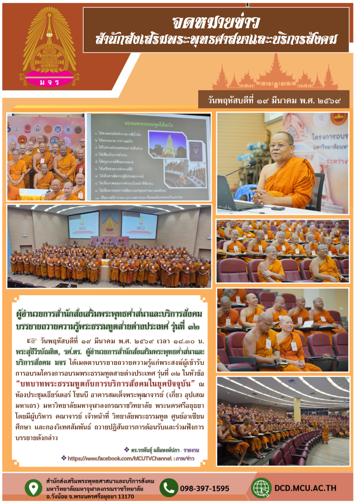 “พระสุธีวีรบัณฑิต, รศ.ดร. บรรยายถวายความรู้ เรื่องบทบาทพระธรรมทูตกับการบริการสังคมในยุคปัจจุบัน โครงการอบรมพระธรรมทูตสายต่างประเทศ รุ่นที่ ๓๒”